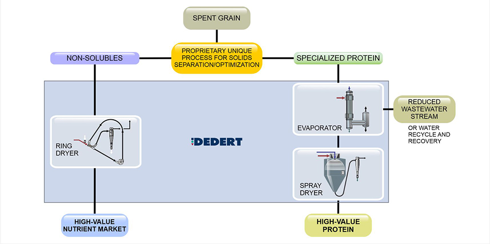为植物蛋白工厂提供交钥匙工业规模工艺技术方案使狄德成为行业的理想选择。狄德也是作物分馏操作、啤酒废水优化和新兴发酵工艺等方面的专家。请参阅以下工艺信息。
